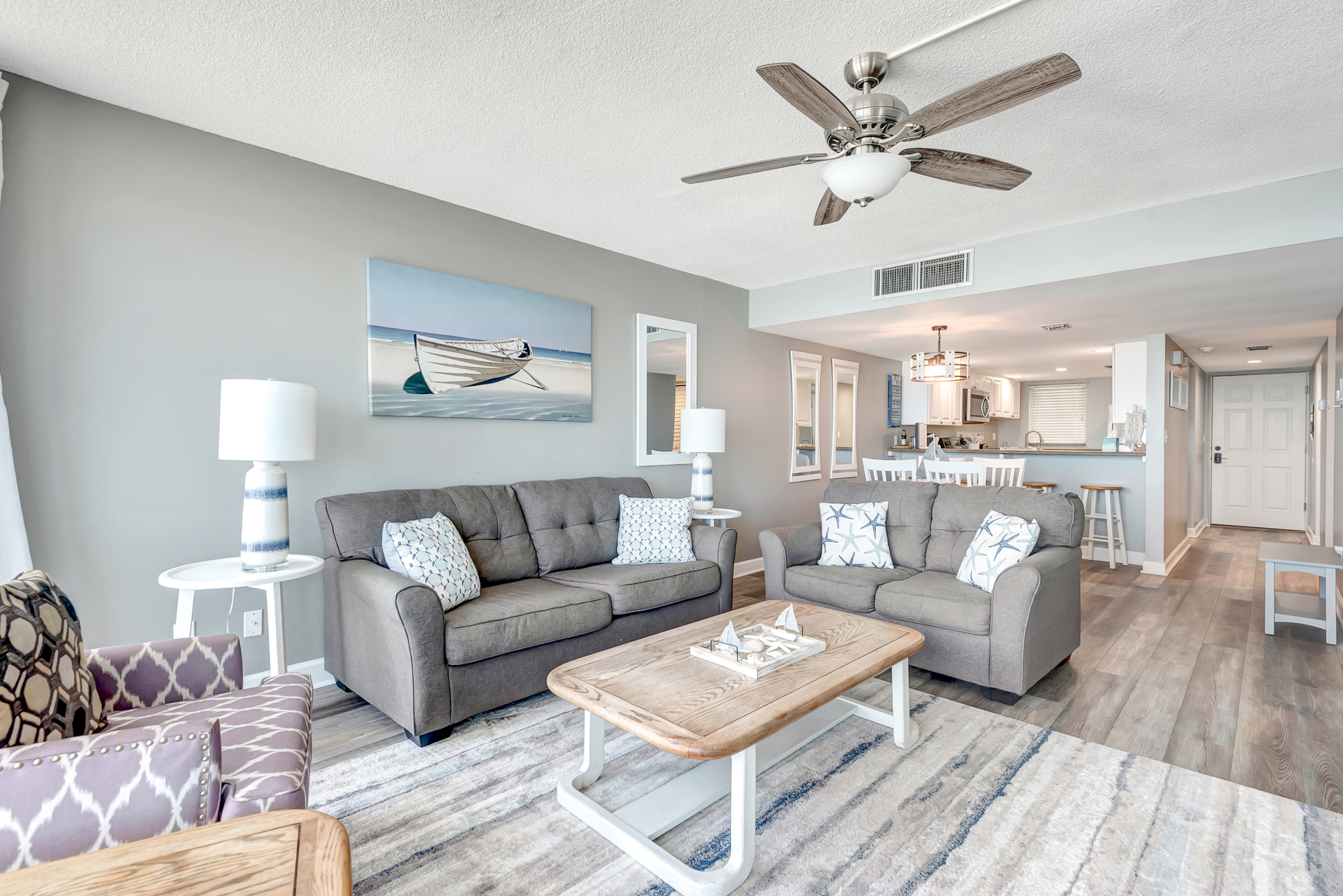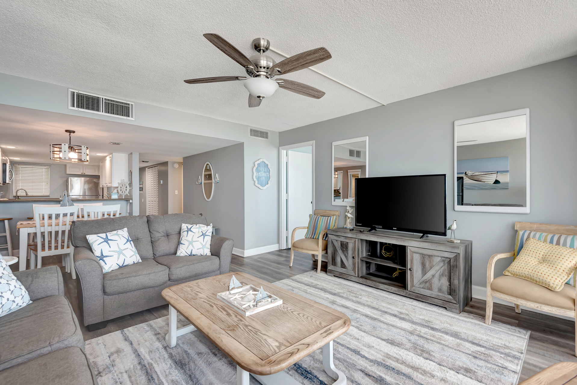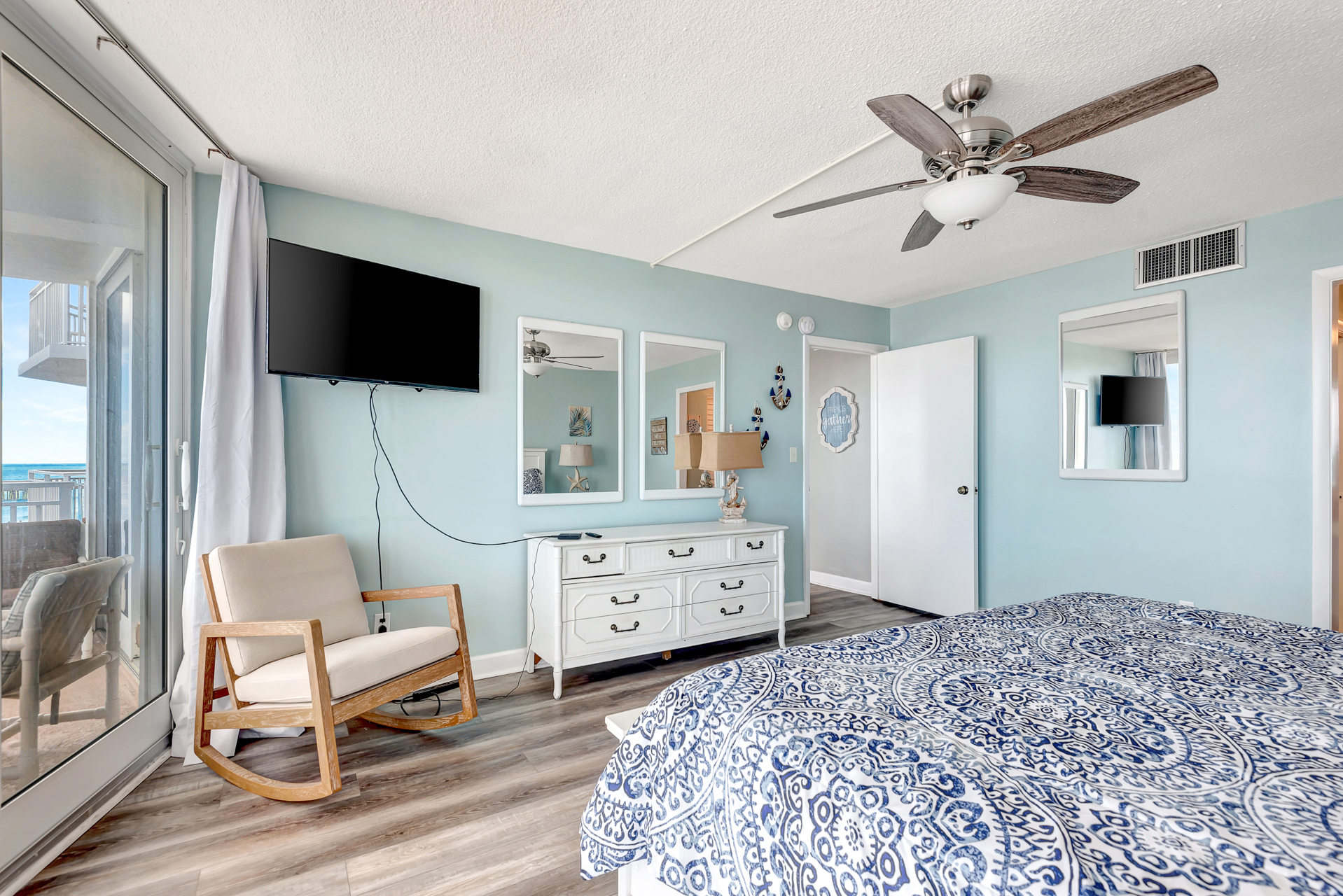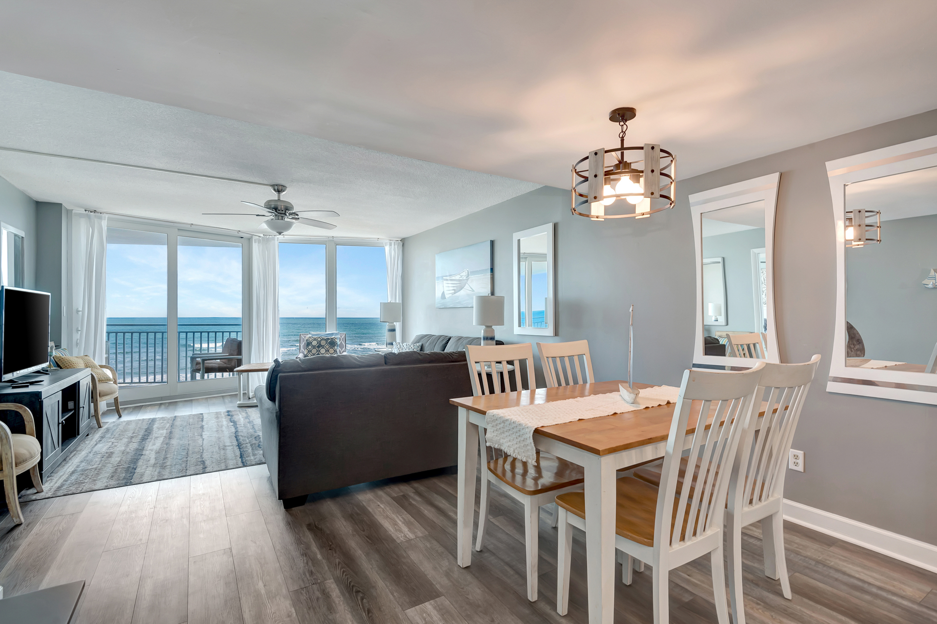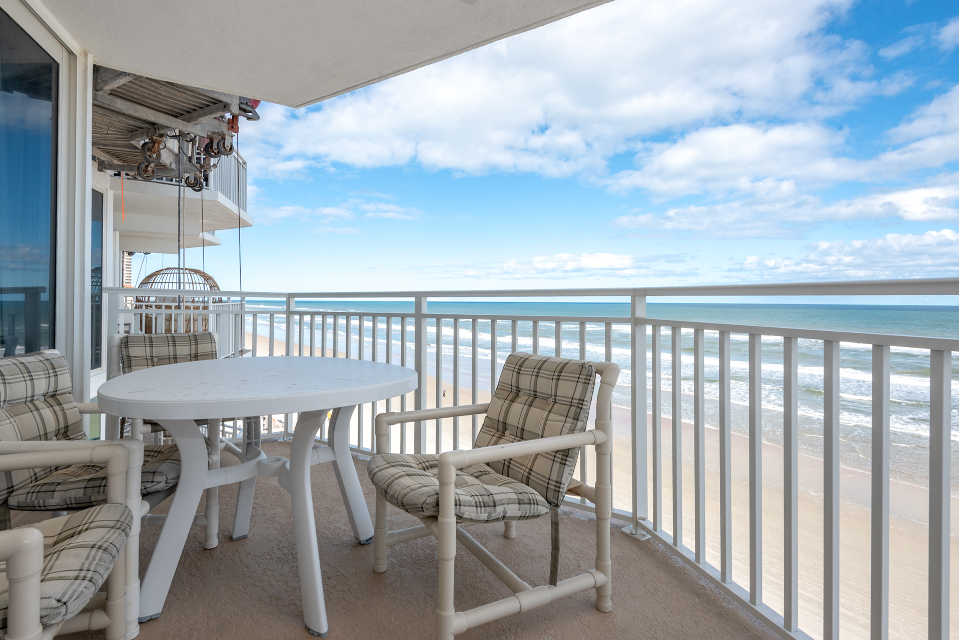 This 6th floor condo is direct ocean front with ceiling to floor windows just steps from the world-famous Daytona Beach. With two bedrooms, King in the master & two queens in the guest room (linens included) and two baths it easily accommodates up to six people. Fully equipped kitchen for all your cooking and baking needs with a washer/dryer just for your use.