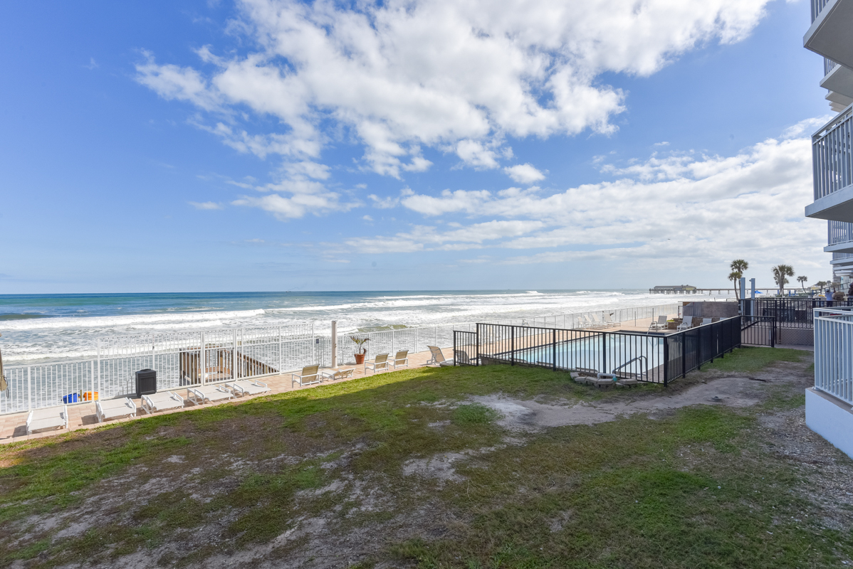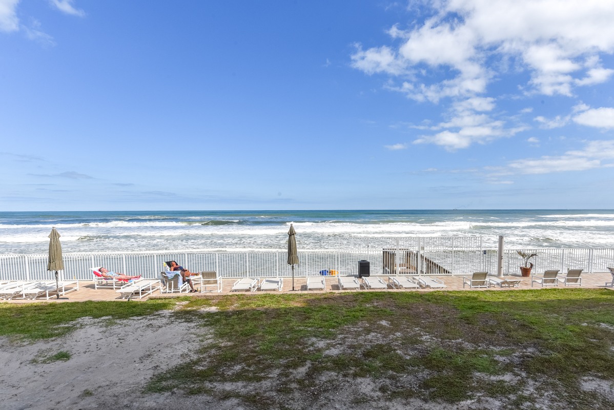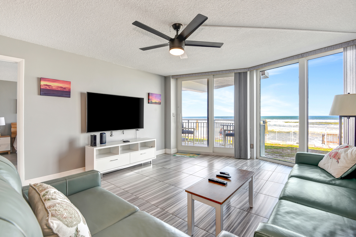 First-floor well-appointed condo with floor to ceiling windows/sliders with balcony. Just steps to the sundeck, grilling space, and beach access.