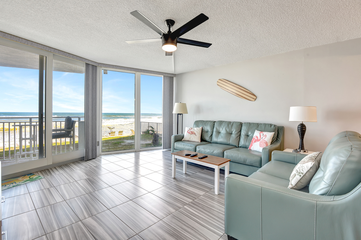 First-floor well-appointed condo with floor to ceiling windows/sliders with balcony. Just steps to the sundeck, grilling space, and beach access.